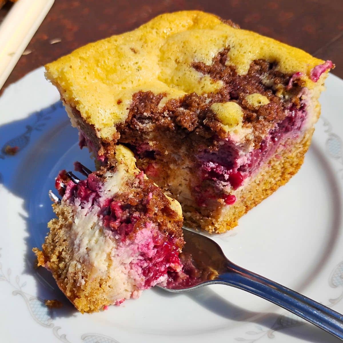 And by choosing healthy ingredients, this cheesecake can be quite good for you. I used fresh milled ancient grains for the crust and crumbles, but you can use whole wheat flour or all-purpose. It's adaptable. I wrote this cheesecake recipe for use with quark cheese originally, but you can also make it with ricotta or cottage cheese and you'll find all that information in my article on how to make these incredibly delicious blackberry cheesecake streusel bars.