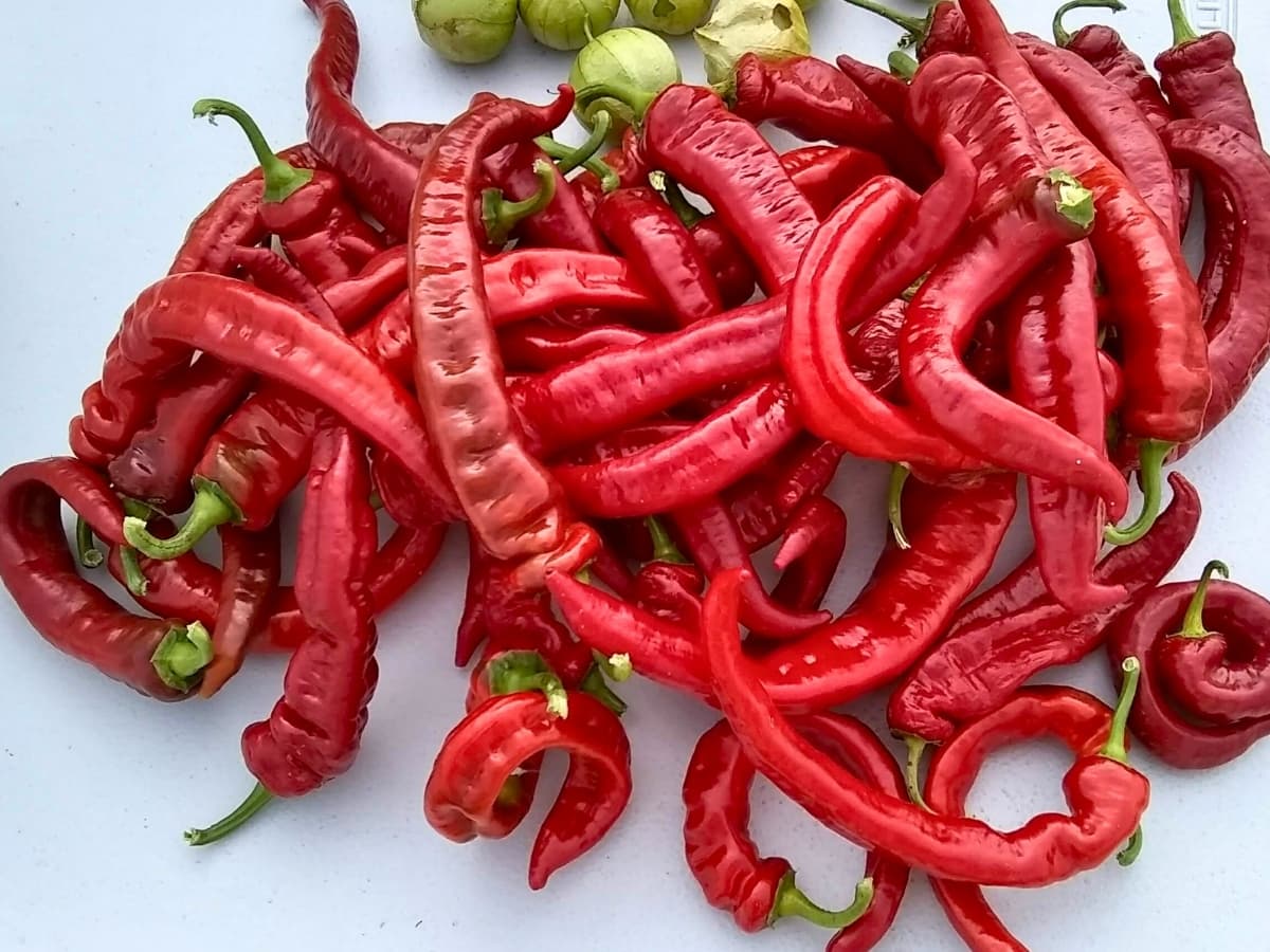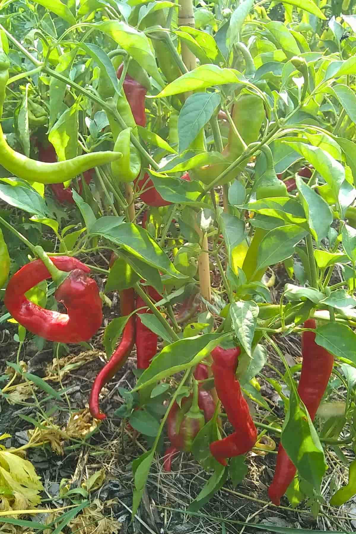 Jimmy Nardello Peppers. I can highly recommend these delicious and prolific frying peppers. To preserve them, just toss into a freezer bag and freeze. Use as needed.