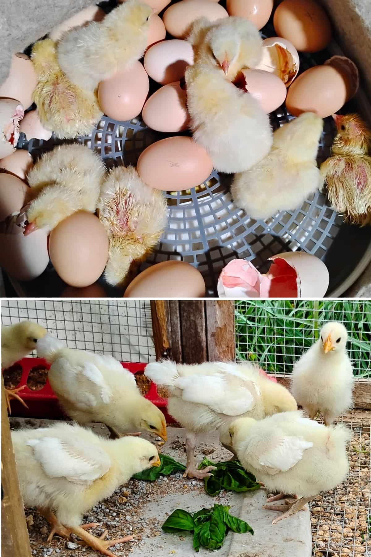 Above: Just hatched inside the brooder! The picture below was from today. Getting their wing feathers.
